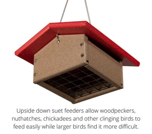 Birds that use this feeder Woodpeckers, Scarlet Tanagers, Nuthatches, Jays, Bluebirds, Other Perching or Clinging Birds Seed or Feed Options: Standard-Size Suet Cakes Origin Country: USA