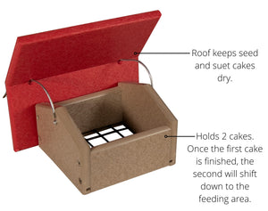 Lifetime guarantee to never crack, split or fade. Holds 2 suet cakes.