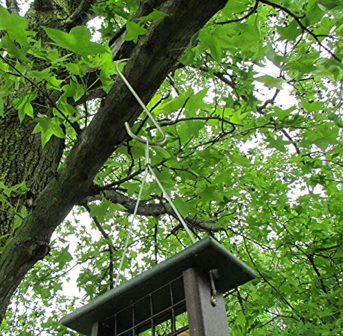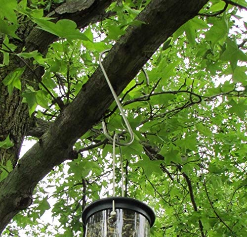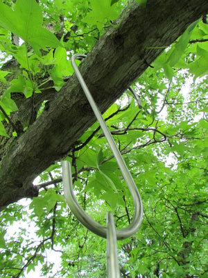 This sturdy stainless steel hook is perfect for hanging large or heavy bird feeders, planters, or other containers or products up to 50 lbs. This hook will not rust or chip. The larger end is the perfect size and shape to hook securely to branches. The smaller end will hold birdfeeders, bird houses, hanging plants, windchimes-- just about anything you may want to hang securely from your tree. No paint and no rust means that this hook will not harm your tree branches. Product manufactured in China. Specifications Overall Height 12 in. Construction 1/4" Gauge Stainless Steel Origin Country China